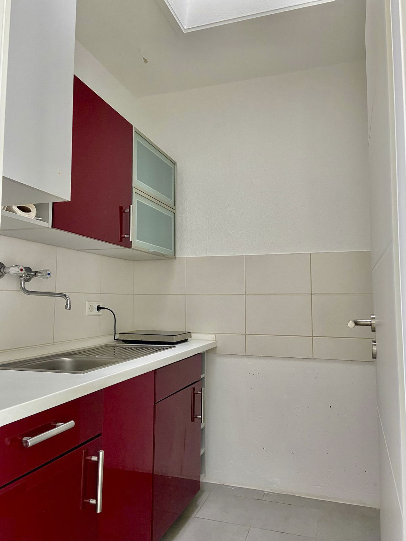 Die Küche ist funktional geschnitten und bietet Platz für alle wichtigen Küchengeräte und Utensilien. Ein kleiner Abstellraum, der direkt vom Flur aus erreichbar ist, ergänzt das praktische Raumangebot. Die Küche verfügt derzeit über keine fest eingebauten Elektrogeräte.